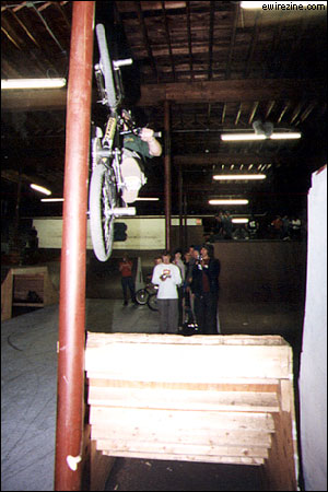 Now this is using the whole course: Jon Demers , double peg-stall fakie on the pole.